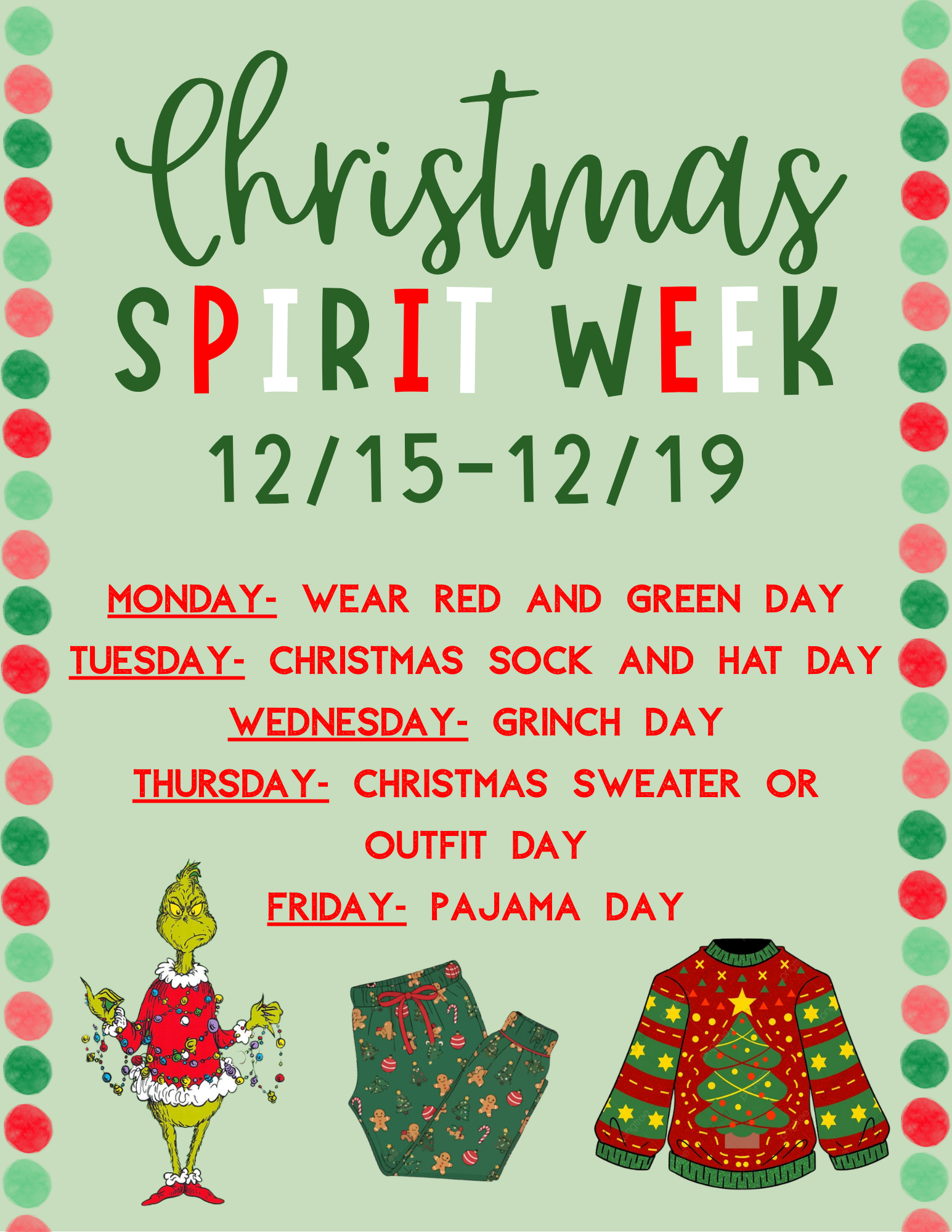 - December 12th: Snacks with Santa (PreK-3rd Grade)