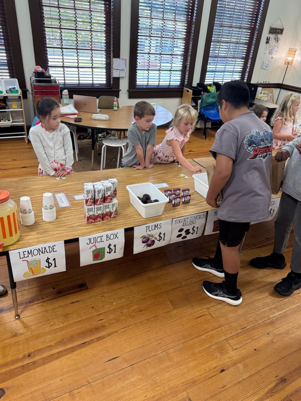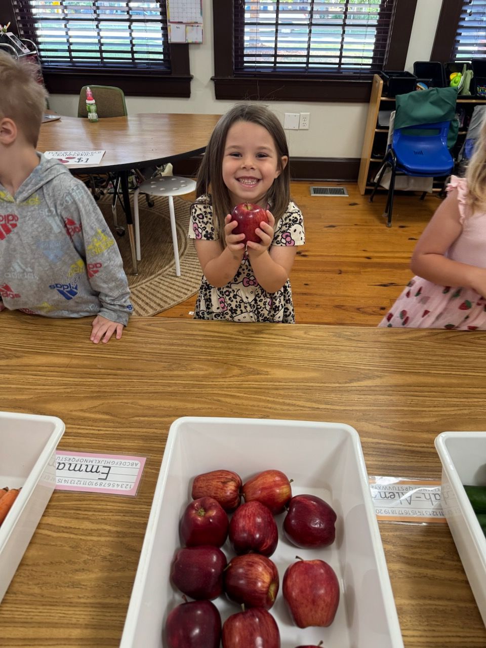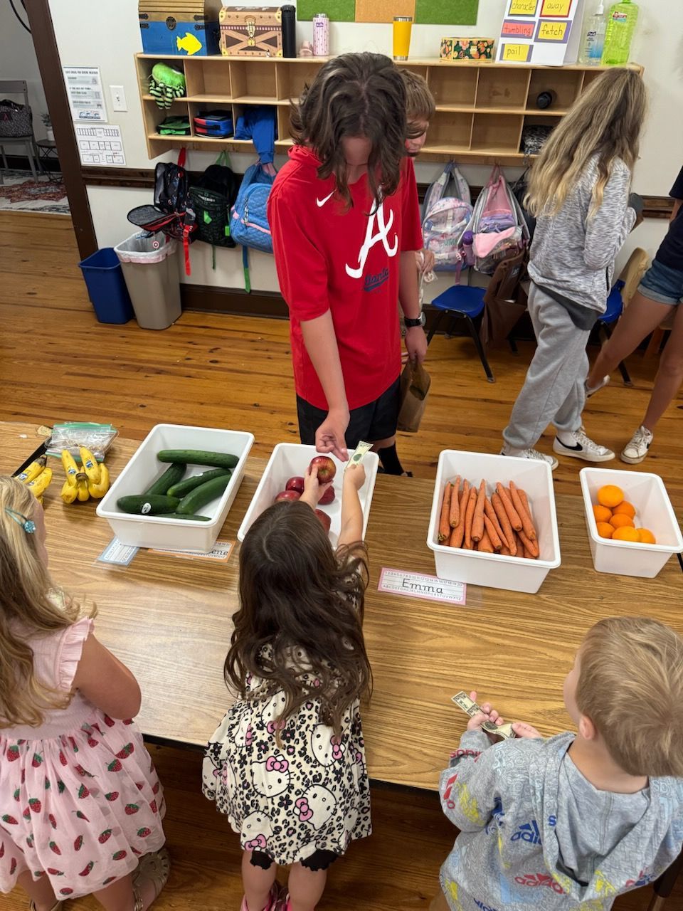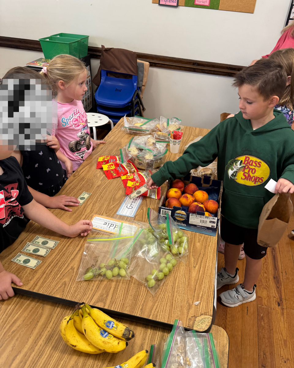 - The Kindergarten class has been learning nursery rhymes. Their current one is This Little Piggy Went to the Market. They then hosted their own market called "The Kinder's Farmers Market" where they each brought things in the "sell". The other grades joined them by shopping their produce and homemade goodies. It was a fun time!