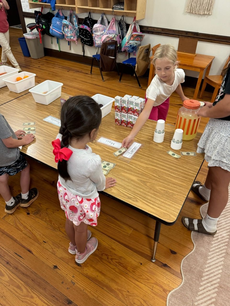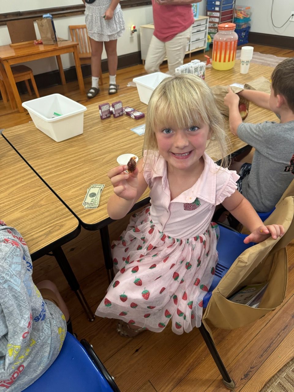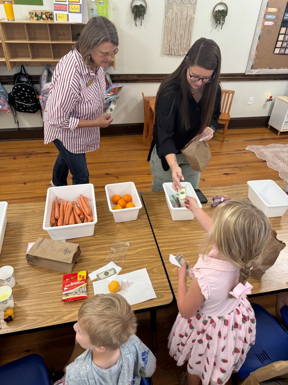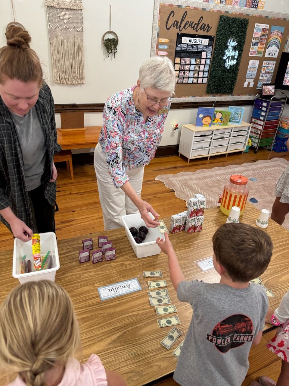 - The Kindergarten class has been learning nursery rhymes. Their current one is This Little Piggy Went to the Market. They then hosted their own market called "The Kinder's Farmers Market" where they each brought things in the "sell". The other grades joined them by shopping their produce and homemade goodies. It was a fun time!