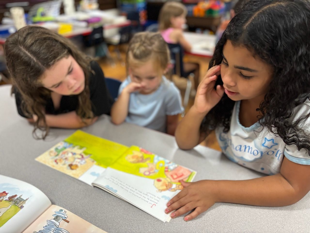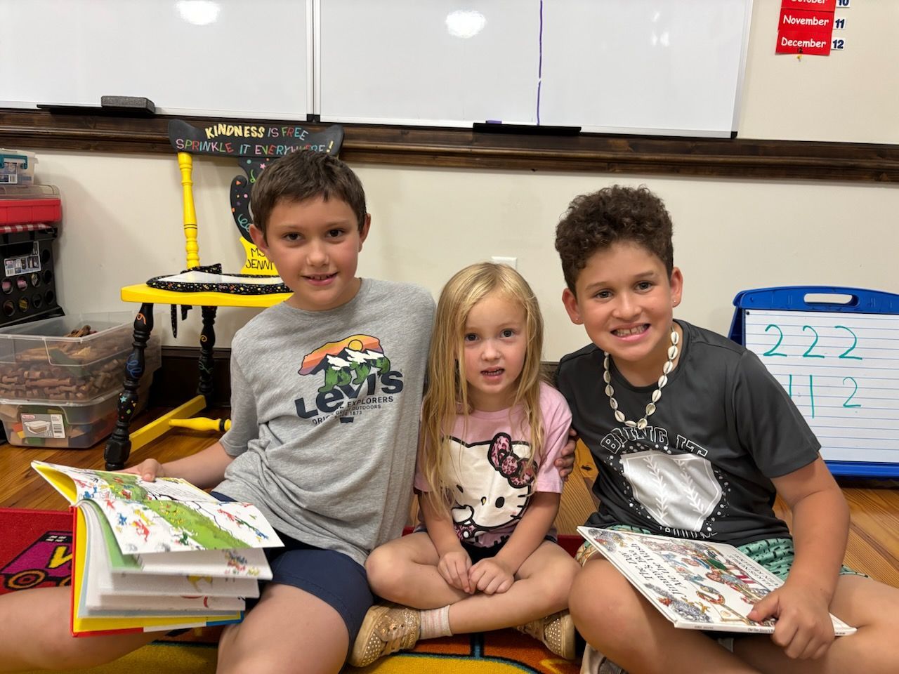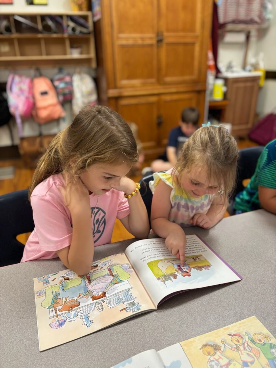 - Pre-K started book buddies! This is where the 3rd graders come down to read to them.